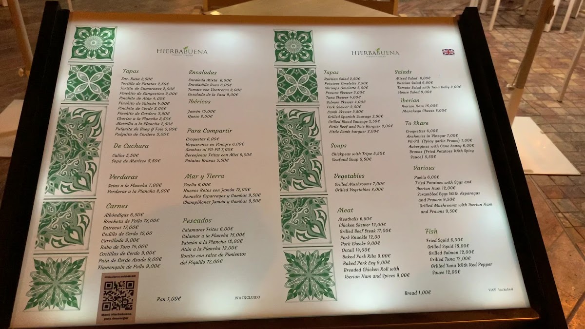 One of the standout features of Hierbabuena Restaurante is its diverse and mouth-watering menu. The restaurant offers a variety of dishes that showcase the best of the region’s culinary traditions, from fresh seafood to rich, flavorful stews. A personal favorite for many visitors is their take on “tapas,” small dishes that allow you to explore a wide range of flavors. Whether you’re in the mood for crispy fried calamari, marinated olives, or the classic Spanish tortilla, each dish at Hierbabuena is prepared with the freshest ingredients, ensuring both quality and taste are at the forefront of the dining experience.